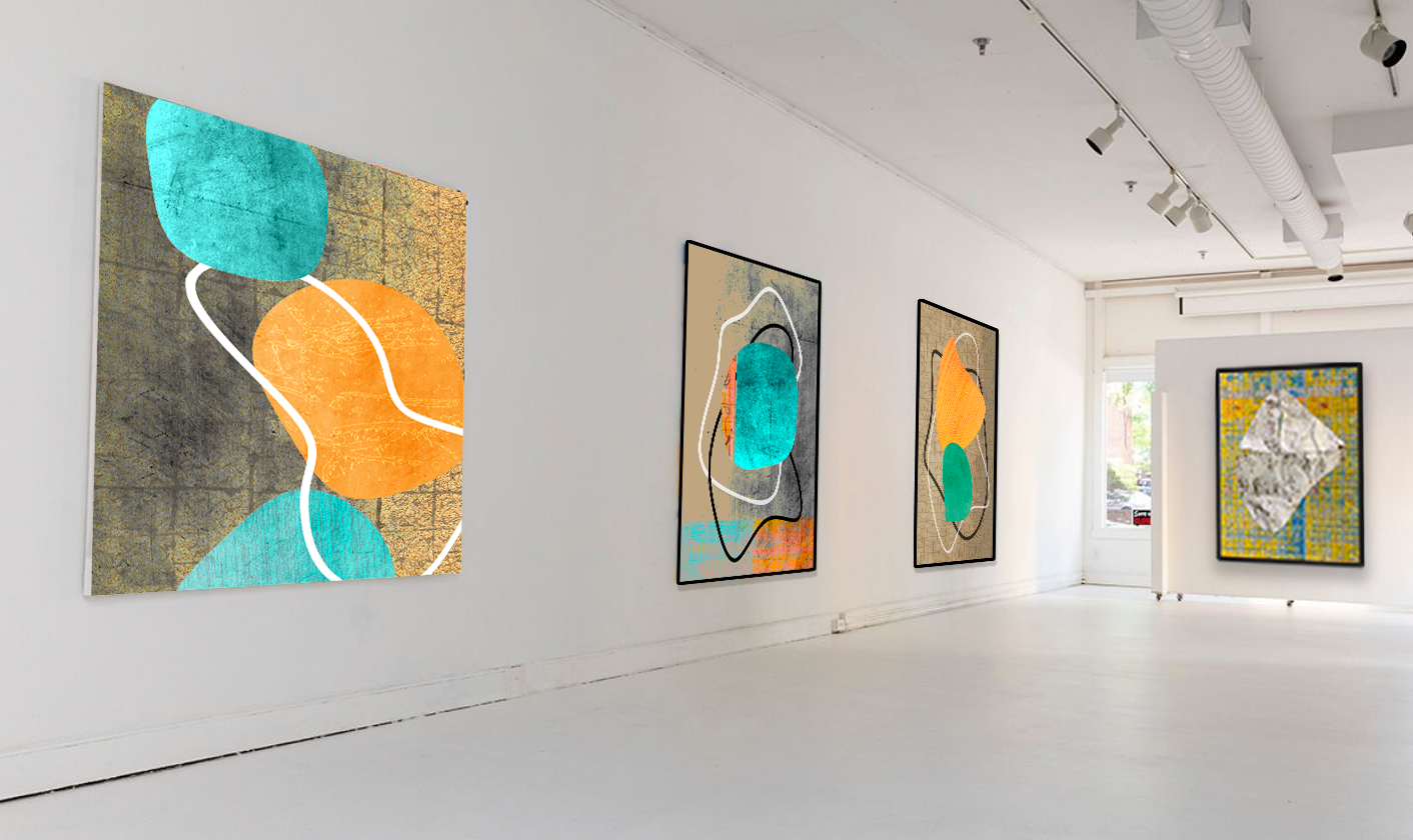 Artifacts Mid-century modern meets textured painting, with lots of movement. I had previously experimented with some of the tropes of mid-century design.This work evolved from those explorations.